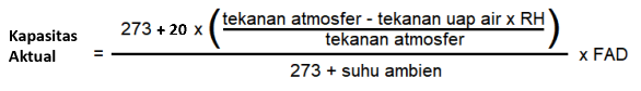Kapasitas FAD kompresor bisa sangat berbeda dengan kapasitas aktual kompresor karena dalam menghitung kapasitas aktual dimasukan faktor suhu, tekanan dan kelembaban udara atmosfer aktual yang dapat mempengaruhi nilai volume udara. Maka dari itu diperlukan rumus konversi untuk menghitung nilai FAD menjadi nilai kapasitas Aktual.