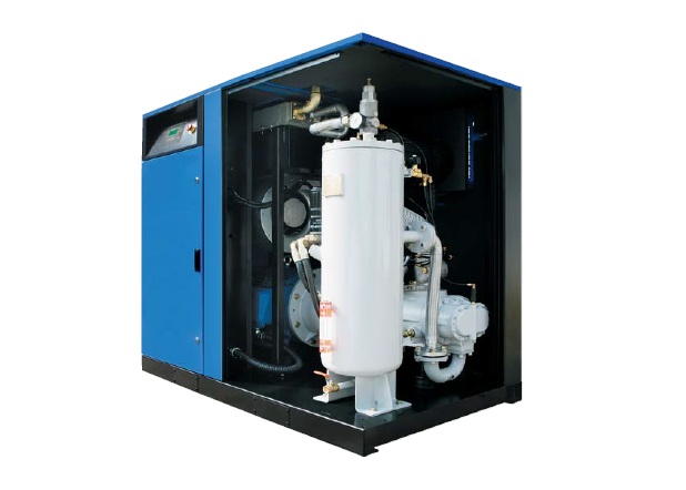New profile rotor airend, direct drive.  High air capacity, efficient, saving energy